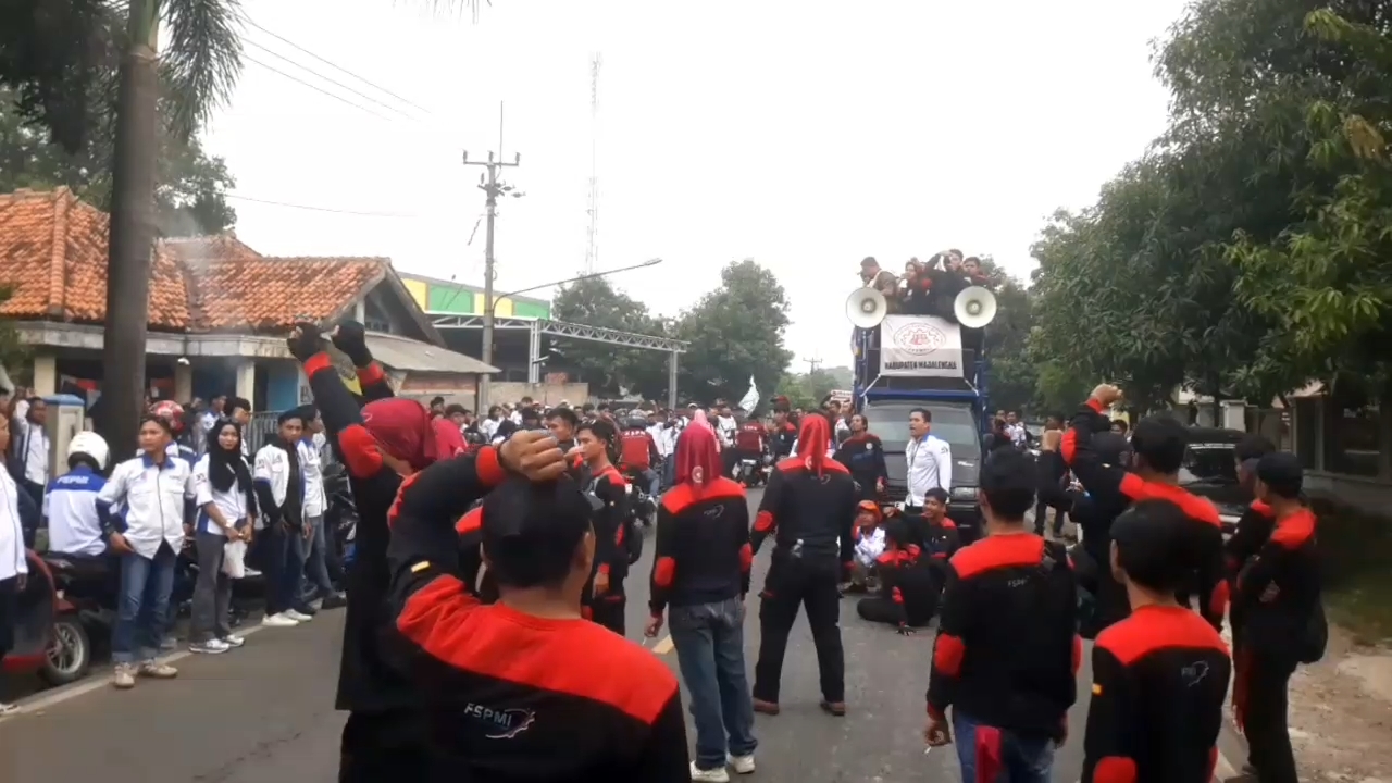 Inilah aksi ribuan buruh di Kabupaten Majalengka yang menggelar demonstrasi di jalur nasional wilayah Kecamatan Palasah. Para massa menuntut kenaikan upah buruh tahun 2026.
