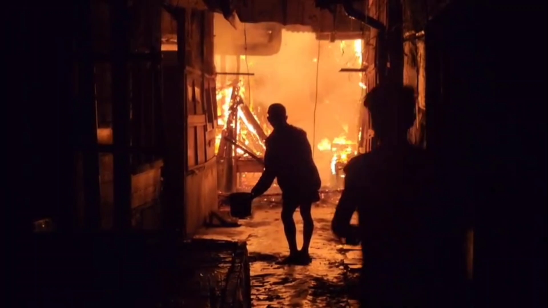 CIREBON, PILARadio – Diduga korsleting listrik usai tersambar petir, ratusan kios Pasar Lemahabang, Kabupaten Cirebon, Jawa Barat, terbakar hebat pada Selasa malam. Api yang berasal dari area tengah dengan cepat membesar dan merambat hingga menghanguskan kios pedagang. Bahkan, kebakaran ini sempat memicu kepanikan hingga salah satu pedagang pingsan.