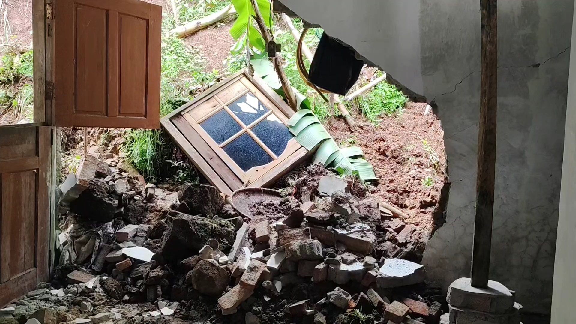 Hujan deras menyebabkan tebing setinggi sepuluh meter longsor dan menimpa rumah warga