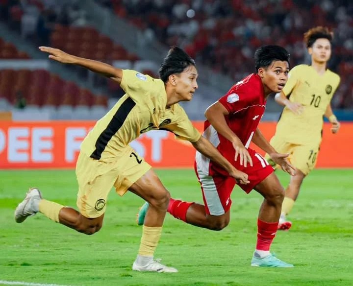 Sejak awal pertandingan, Indonesia tampil lebih dominan dengan penguasaan bola yang lebih baik dibandingkan Malaysia. Strategi umpan pendek cepat menjadi andalan anak asuh pelatih Gerald Vanenburg dalam membangun serangan. Permainan Garuda Muda terlihat tenang dan terorganisir, tidak terburu-buru saat menekan pertahanan lawan. Sayangnya, sejumlah peluang yang tercipta di babak pertama tidak membuahkan gol, termasuk peluang dari Jens Raven yang memimpin lini depan namun belum mampu menembus pertahanan Malaysia.
