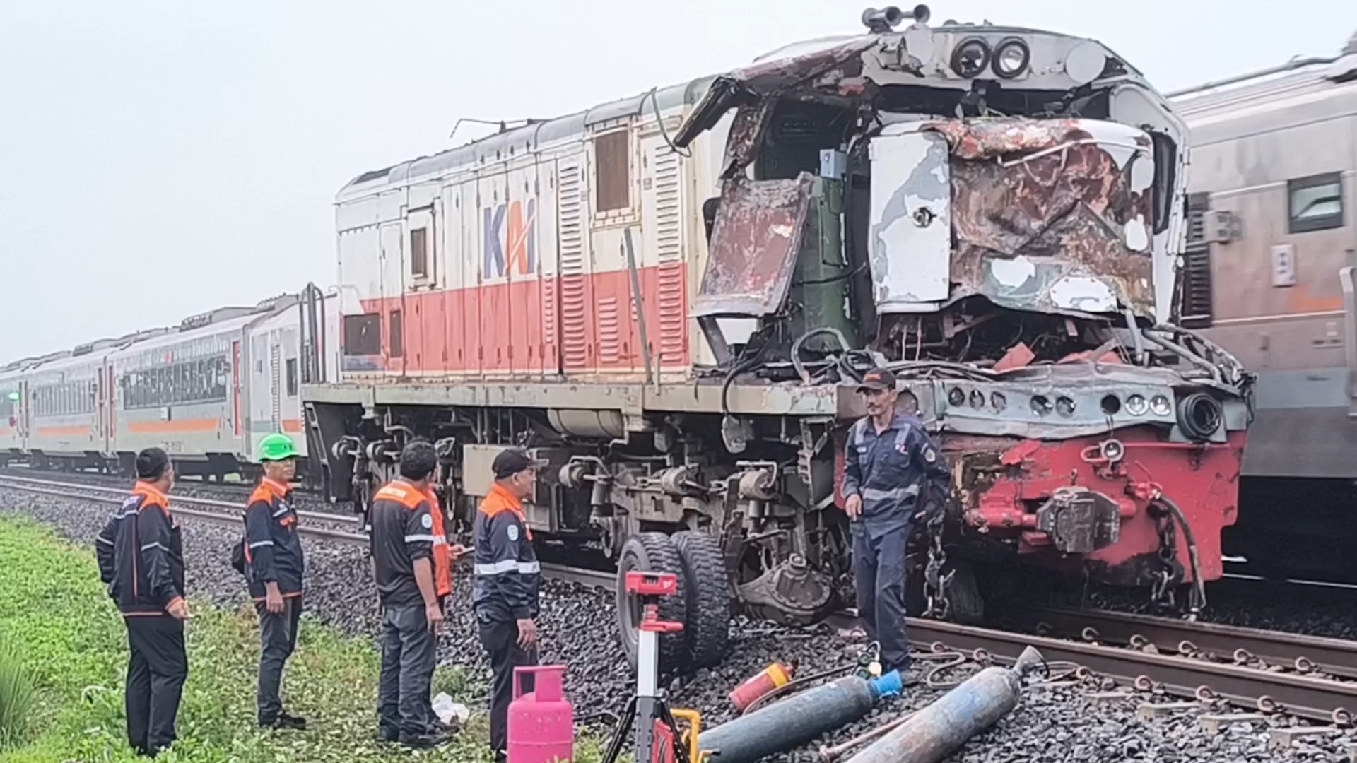 Petugas kereta api Daop 3 Cirebon yang tiba di lokasi langsung melakukan perbaikan pada bagian depan kereta yang mengalami kerusakan. Petugas kemudian mengevakuasi gerbong kereta untuk melanjutkan perjalanan dari arah Semarang menuju tujuan Pasar Senen, Jakarta.