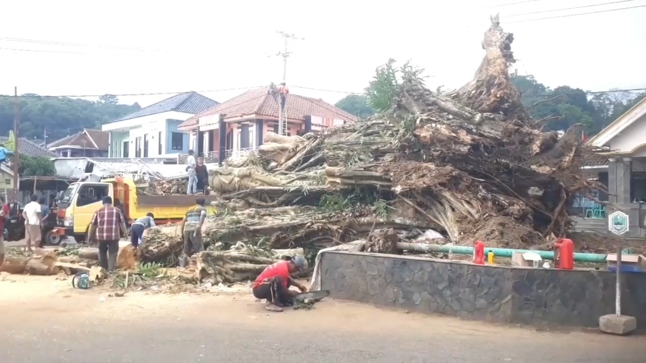 MAJALENGKA, PILARadio – Cuaca buruk yang terjadi di wilayah Kabupaten Majalengka, Jawa Barat, mengakibatkan sebuah pohon setinggi 27 meter dan lebar sekitar 17 meter roboh akibat diterpa hujan deras disertai angin. Tak hanya itu, pohon berusia ratusan tahun ini juga menimpa warung milik warga. Beruntung peristiwa ini tidak menyebabkan korban jiwa.
