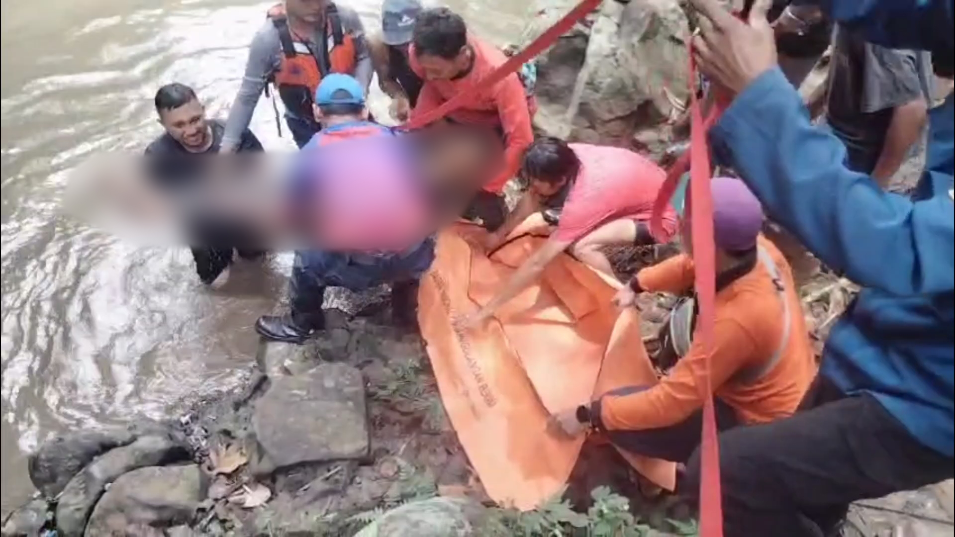 Korban diketahui bernama Tia Sutiawan, 16 tahun. Ia hanyut di sungai diduga terjatuh saat memancing. Keluarga yang khawatir kemudian menyusul korban ke sungai karena tak kunjung pulang, namun hanya menemukan alat pancing serta sebuah tas milik korban.