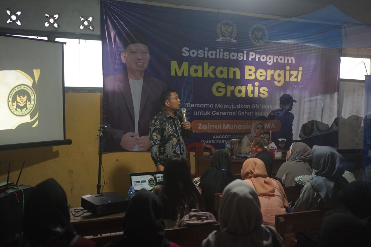 Acara sosialisasi program MBG dihadiri oleh Anggota DPR RI Komisi IX Zainul Munasichin, Tenaga Ahli Direktorat Promosi dan Edukasi Gizi BGN Ande Citra Restiawan, dan Yasmien Nuur Ditrie.