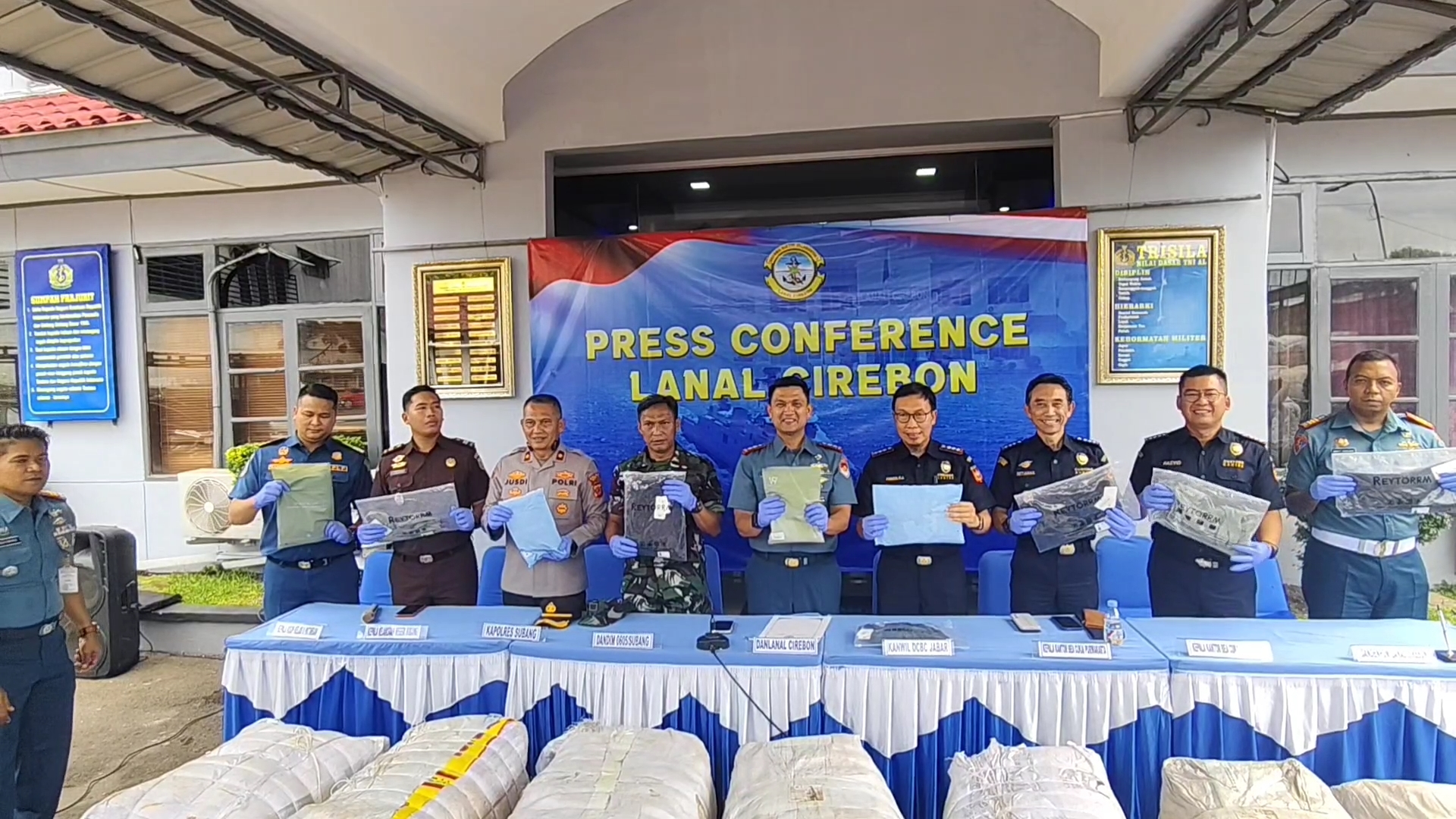 “Petugas intelijen Lanal Cirebon membongkar penyelundupan pakaian sport premium dari Malaysia di Pelabuhan Patimban dan mengamankan 41.280 potong barang tanpa dokumen resmi serta satu truk.” Ujar Danlanal Cirebon, Letkol Laut (P) Faisal Yanova Tanjung