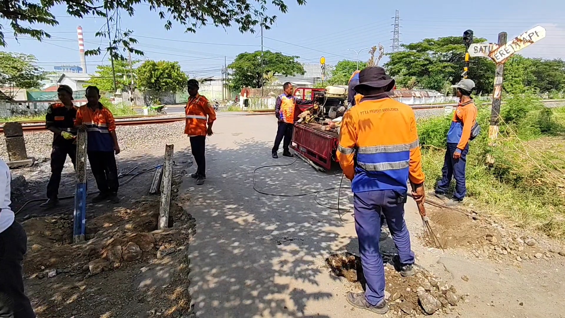 CIREBON, PILARadio – Petugas PT KAI Daop Tiga Cirebon, Jawa Barat, melakukan penyempitan jalan di jalur perlintasan tanpa palang pintu Desa Citemu, Kabupaten Cirebon, Jawa Barat, Rabu sore. Petugas memasang delapan tiang untuk mempersempit jalan dan memungkinkan pengendara untuk lebih berhati-hati saat melewati perlintasan. Hal ini dilakukan untuk mengantisipasi kecelakaan pasca tertabraknya kendaraan pickup yang mengakibatkan dua orang tewas.